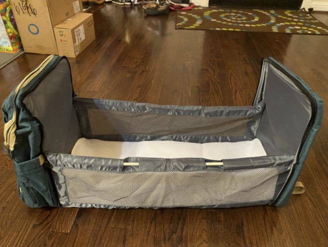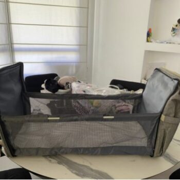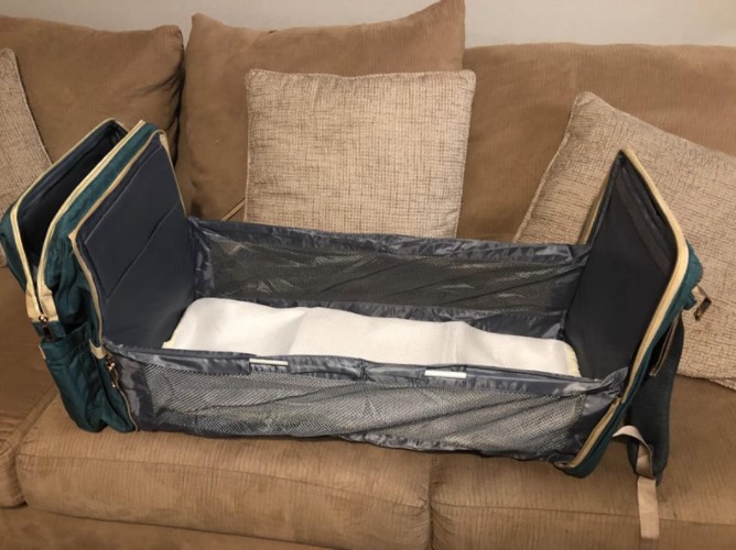 What a unique multi functional travel bag which is a combined diaper bag backpack, bassinet, nappy bag, travel crib, portable baby changing station. With insulated 3 bottle pockets, 5 compartment inside and Concealed waterproof zip pockets at the back and inside, it’s roomy enough to store all baby stuffs, included with removable changing pad/mattress. Thick, durable, machine washable material and foldable easily, this bag is an all in 1 small and light travel bag to accommodate baby needs and mom. It can be worn as shoulder bag, stylist backpack or hanging on a stroller, which makes travel more convenient and easier. I am sold with all the features this bag has and can’t wait to use it for my upcoming baby!