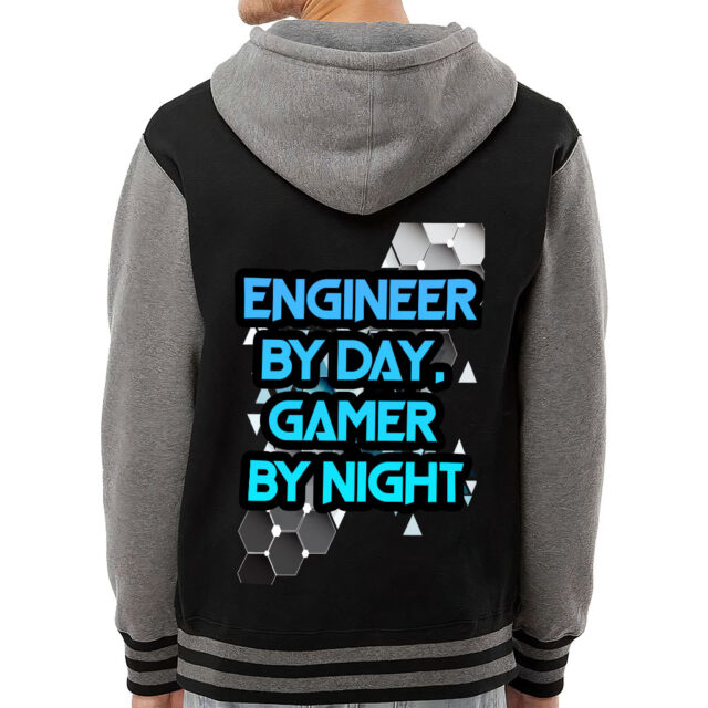 Engineer Gamer Varsity Hoodie – Funny Zip Hoodie – Printed Hooded Sweatshirt