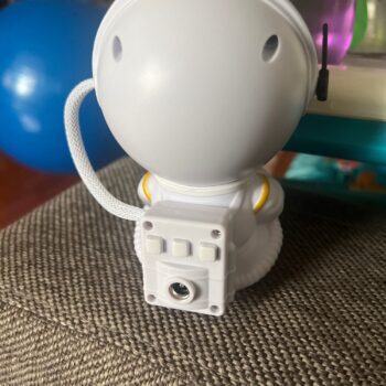 Very cool projector, the package was not damaged, the package includes: Projector, remote, C-tab cord. The project itself also has 3 control buttons. Can adjust the shades, brightness level, the astronaut head itself is movable and can set as you like! The children liked it very much